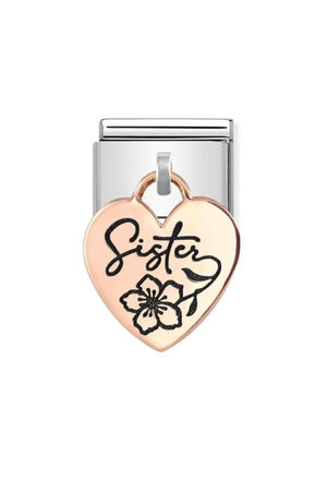 Classic Dekoratif Charm - Charm Plakalar - Kalp Kız Kardeş - 9K Rose Altın