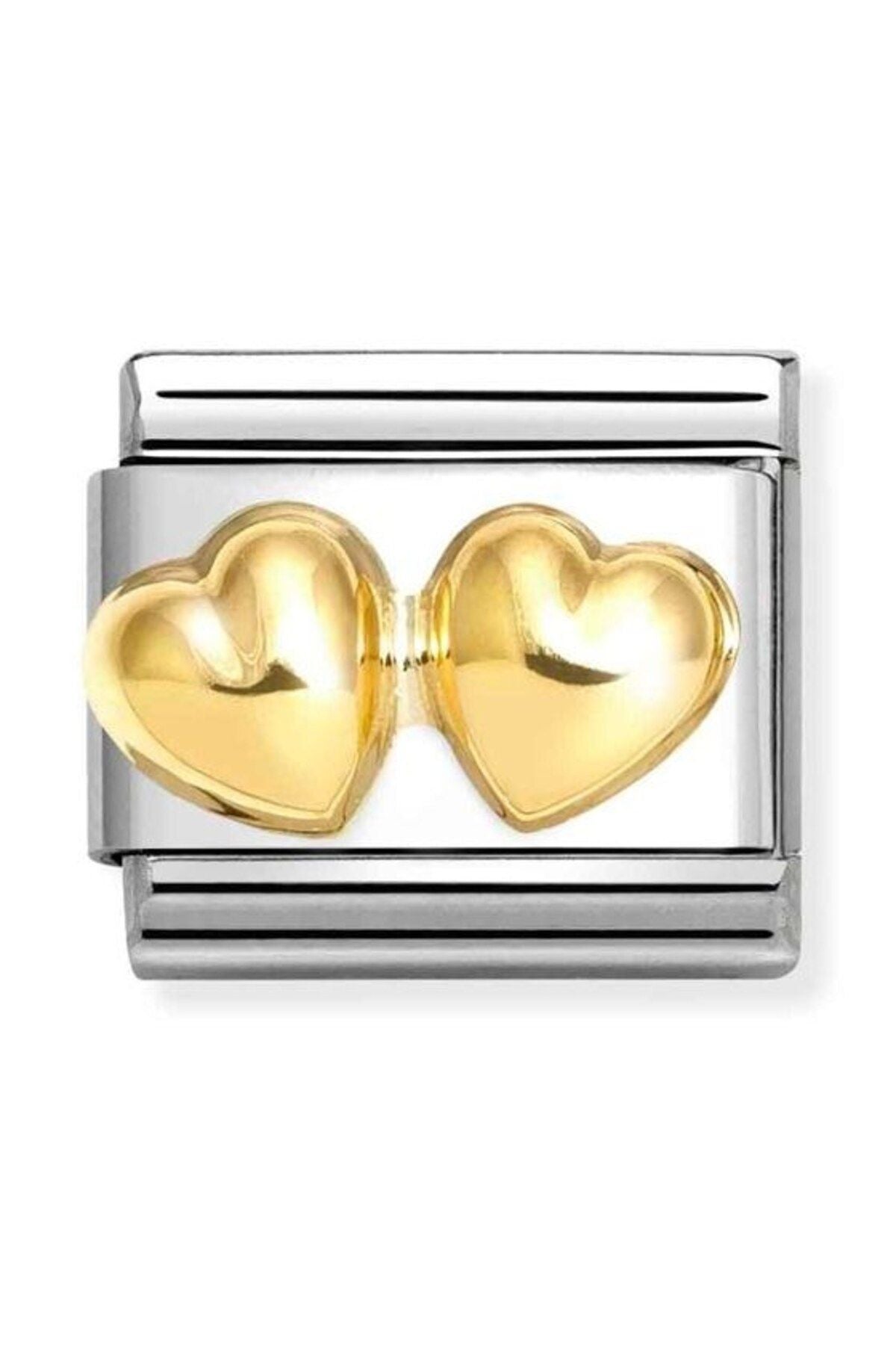 Classic Dekoratif Link - Aşk - Çift Yuvarlak Kalpler - 18K Altın