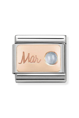 Classic Dekoratif Link - Ay Taşları - Mart Aquamarine - 9K Rose Altın