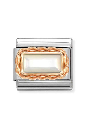 Classic Dekoratif Link - Baget Taş - Beyaz İnci - 9K Rose Altın