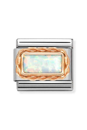 Classic Dekoratif Link - Baget Taş - Beyaz Opal - 9K Rose Altın