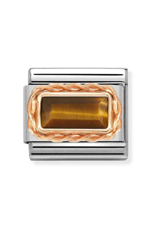Classic Dekoratif Link - Baget Taş - Kaplan gözü - 9K Rose Altın