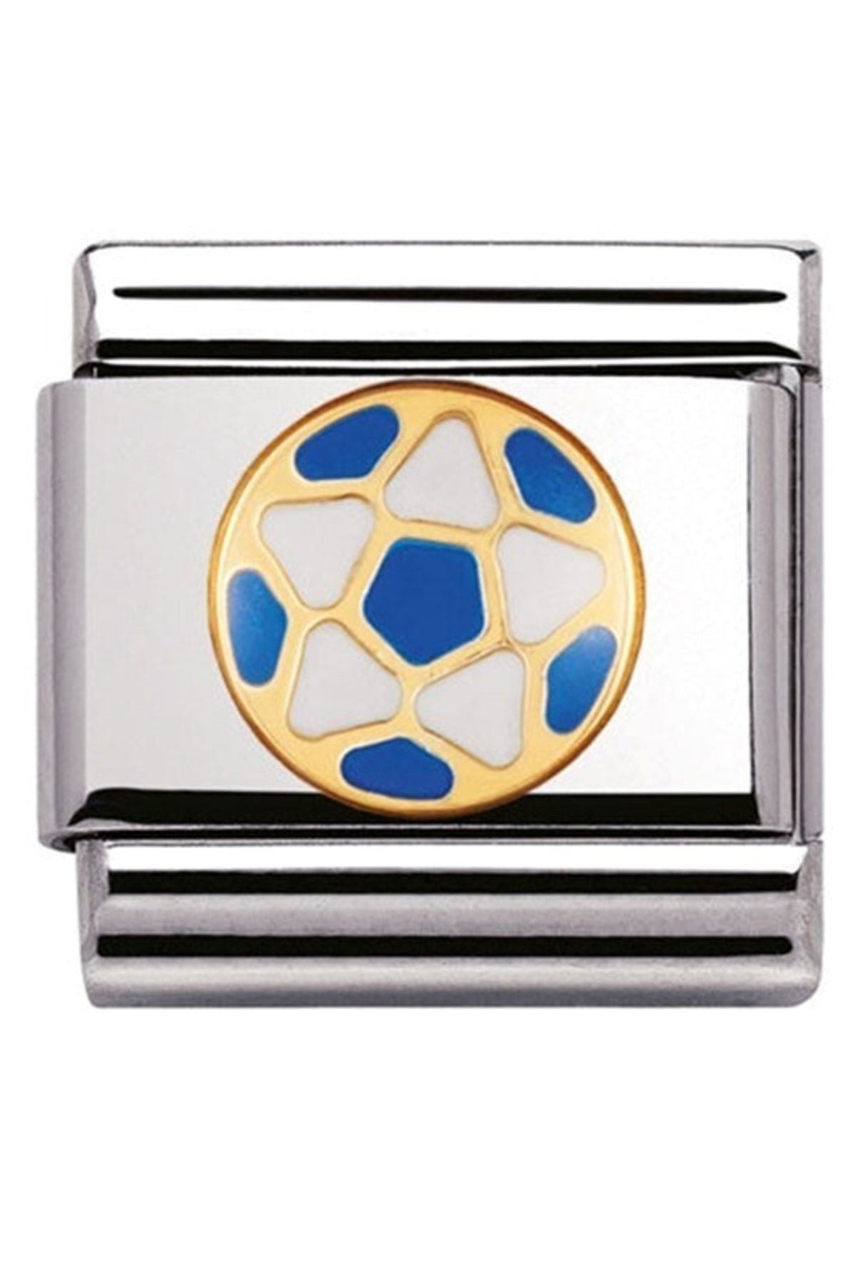 Classic Dekoratif Link - Futbol İtalyan - Beyaz açık mavi top - 18K Altın
