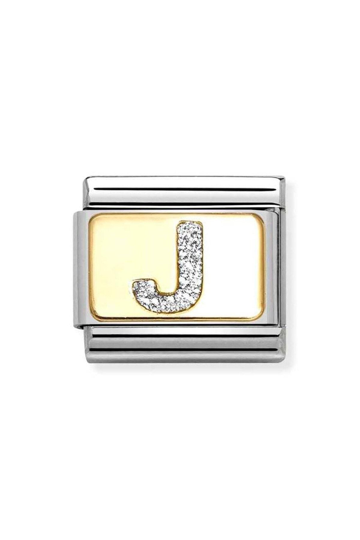 Classic Dekoratif Link - Harfler Pırıltılı - J - (10 J) 18K Altın