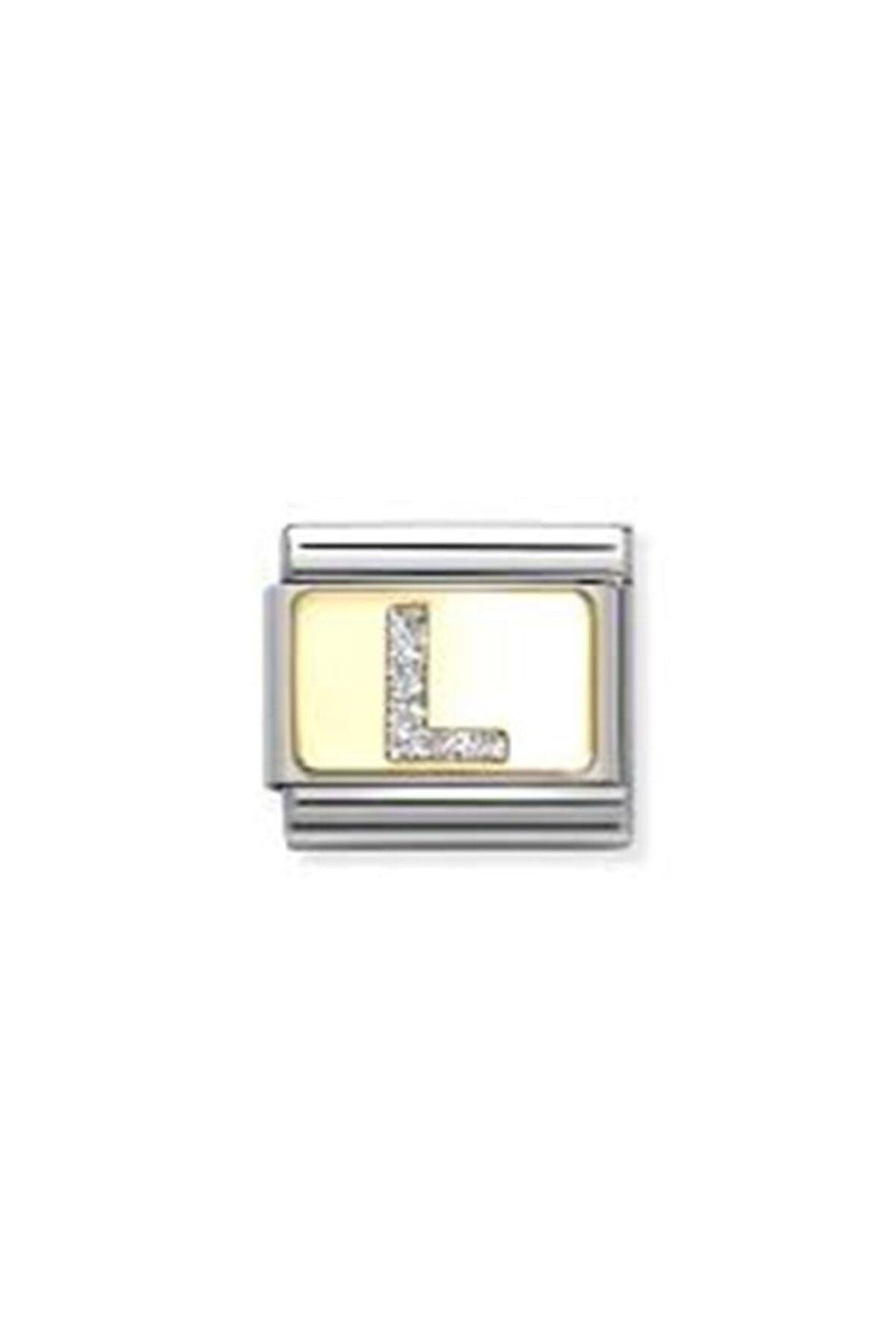 Classic Dekoratif Link - Harfler Pırıltılı - L - (12 L) 18K Altın