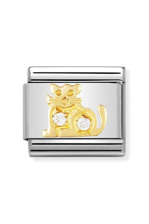 Classic Dekoratif Link - Hayvanlar - Beyaz kedi - 18K Altın Zirkon