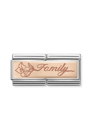 Classic Dekoratif Link - İkili Gravür - Aile - 9K Rose Altın