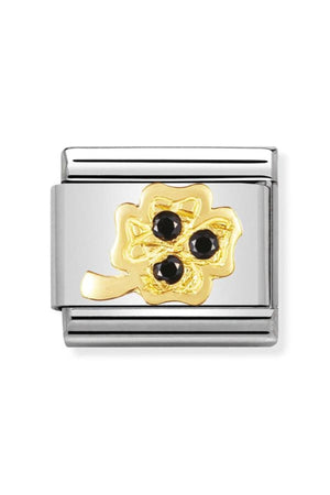 Classic Dekoratif Link - İyi Şans - Siyah Dört Yaprak Yonca - 18K Altın Zirkon