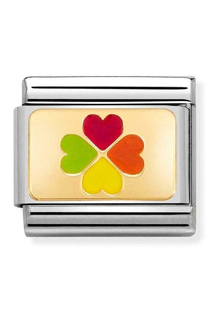 Classic Dekoratif Link - Plakalar - Gökkuşağı Dört Yaprak Yoncası - 18K Altın