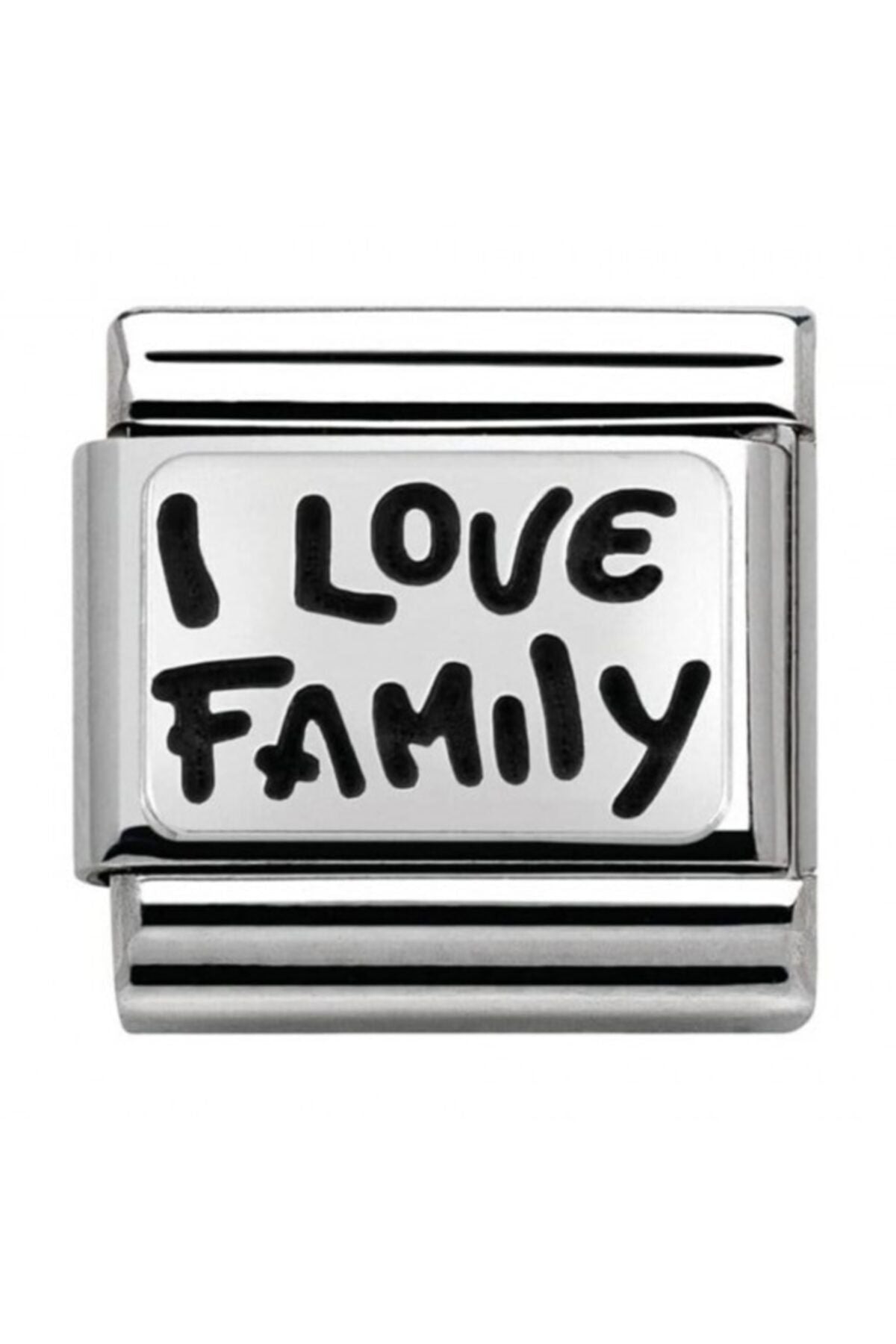 Classic Dekoratif Link - Plakalar Oksitlenmiş - Ailemi seviyorum - 925 Gümüş