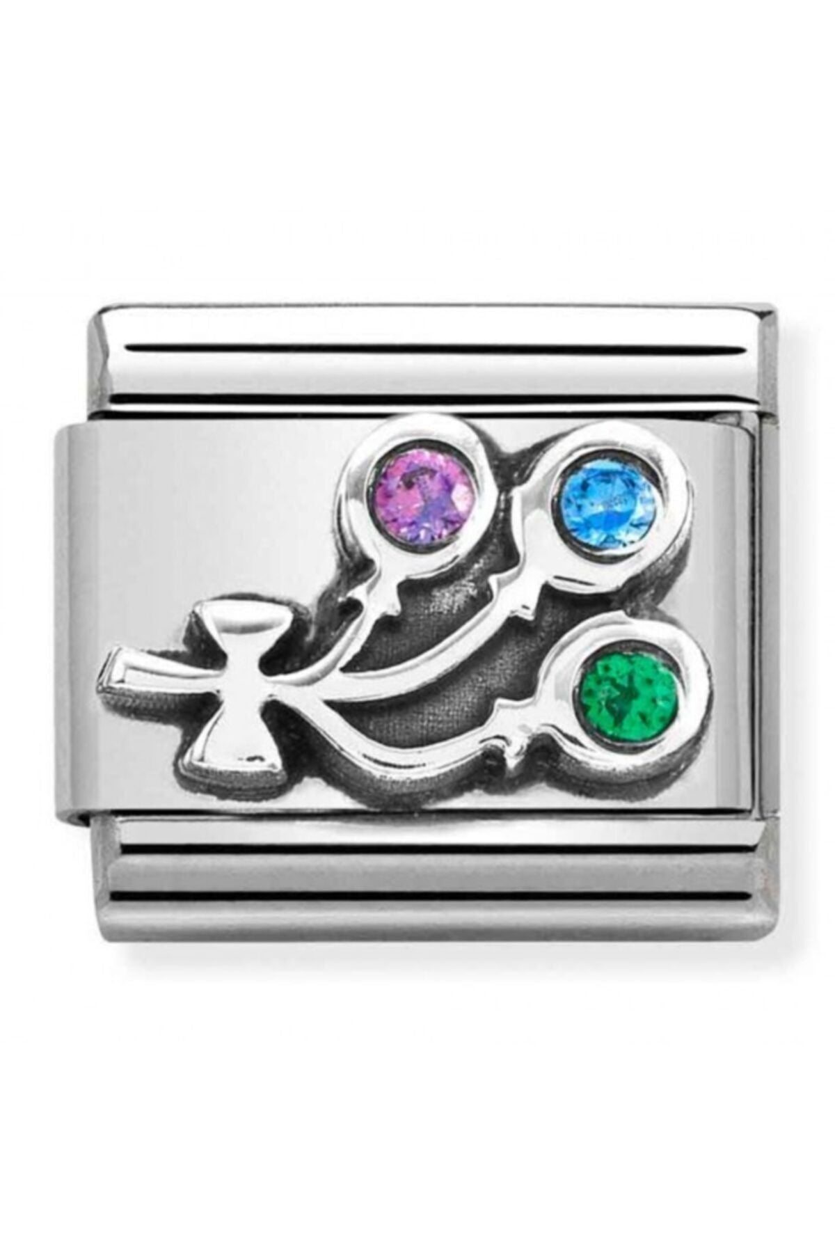 Classic Dekoratif Link - Semboller - Balonlar - (05 Balloons) 925 Gümüş Zirkon