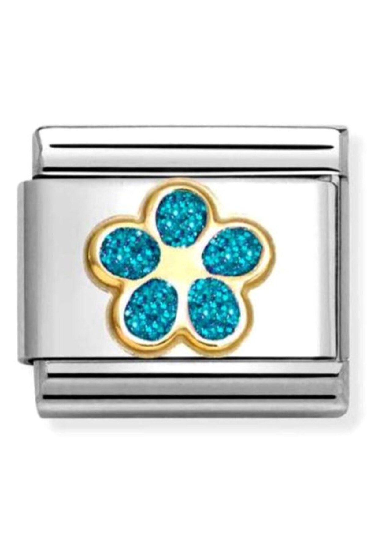 Classic Dekoratif Link - Semboller Pırıltılı - Açık mavi çiçek - 18K Altın