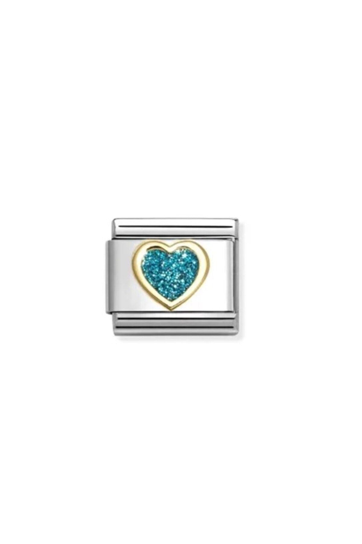 Classic Dekoratif Link - Semboller Pırıltılı - Açık mavi kalp - 18K Altın