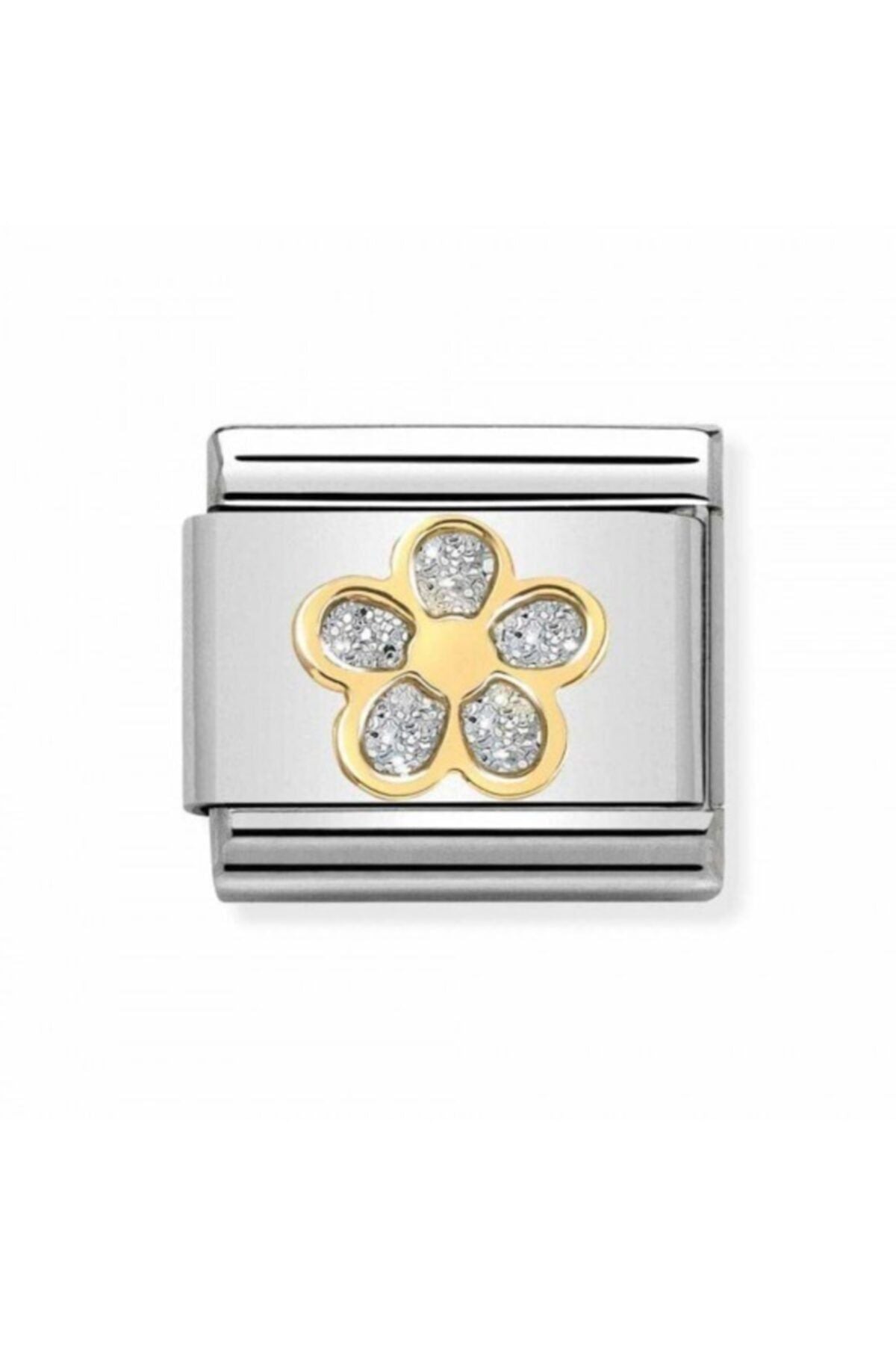 Classic Dekoratif Link - Semboller Pırıltılı - Gümüş çiçek - 18K Altın