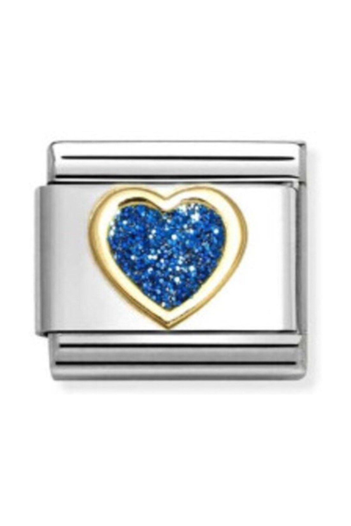 Classic Dekoratif Link - Semboller Pırıltılı - Mavi kalp - 18K Altın