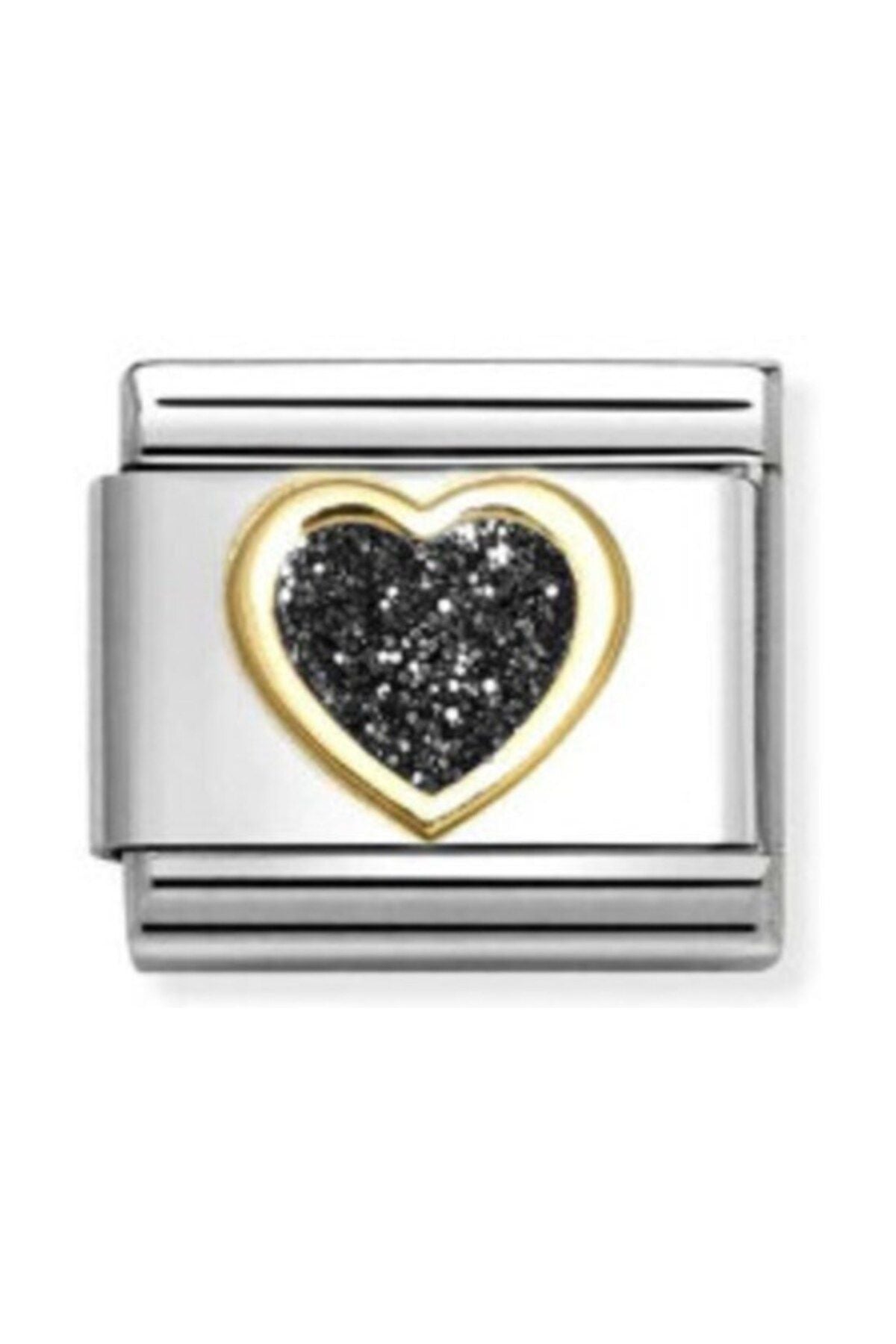 Classic Dekoratif Link - Semboller Pırıltılı - Siyah Kalp - 18K Altın