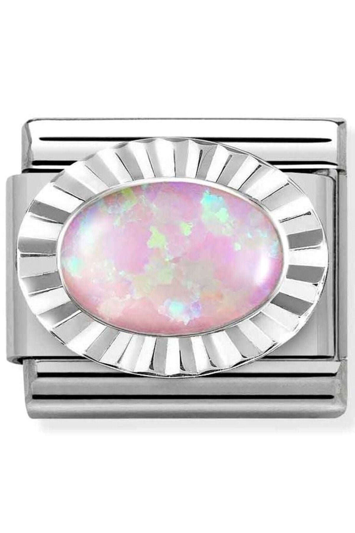 Classic Dekoratif Link - Taşlar Oval Elmas - Opal boynuz - 925 Gümüş