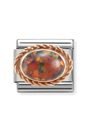 Classic Dekoratif Link - Taşlar Oval - Kırmızı opal - 9K Rose Altın