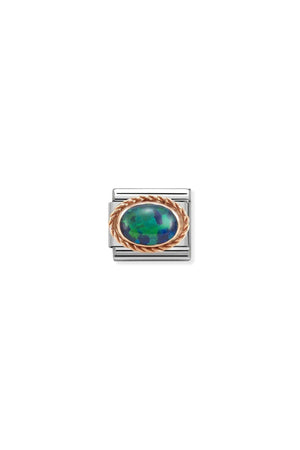 Classic Dekoratif Link - Taşlar Oval - Yeşil opal - 9K Rose Altın