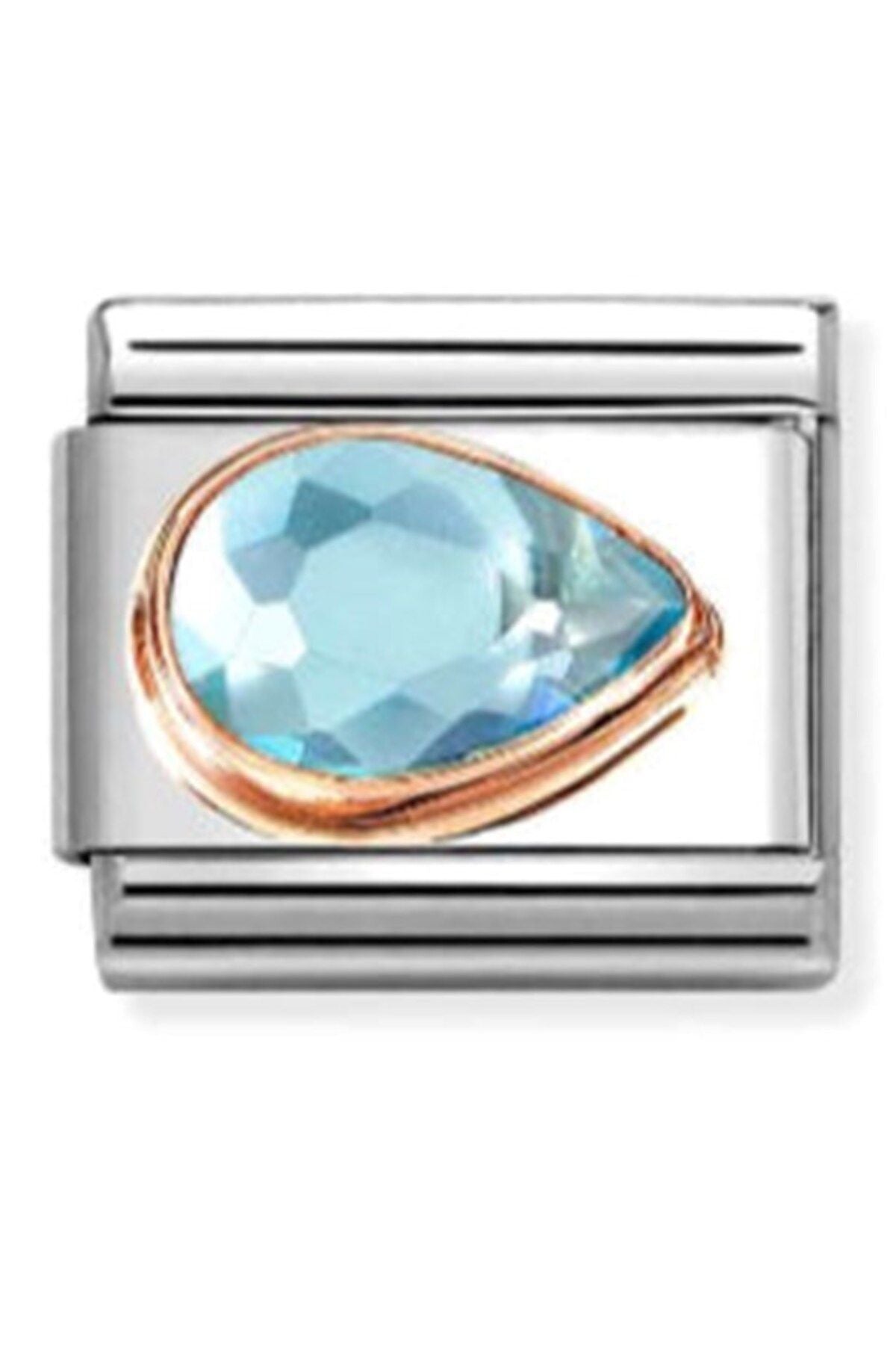 Classic Dekoratif Link - Yüzey İşlemeli - Açık Mavi - 9K Rose Altın Zirkon