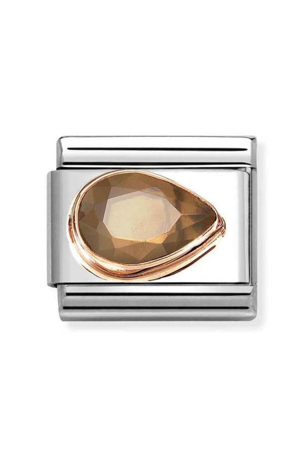 Classic Dekoratif Link - Yüzey İşlemeli - Dumanlı - 9K Rose Altın Zirkon