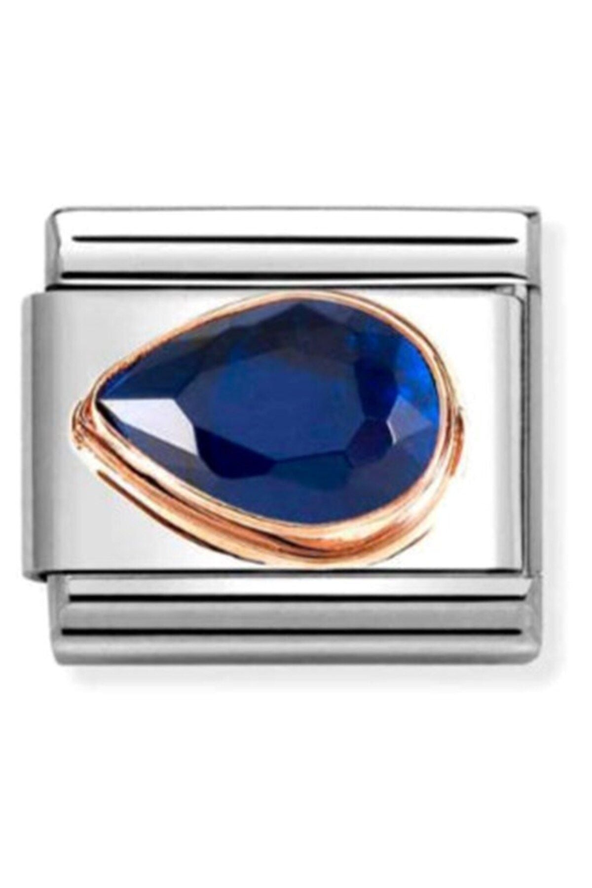 Classic Dekoratif Link - Yüzey İşlemeli - Mavi - 9K Rose Altın Zirkon