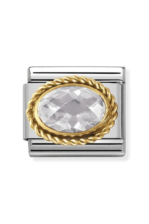 Classic Dekoratif Link - Yüzey İşlemeli Oval - Beyaz - (010 White) 18K Altın