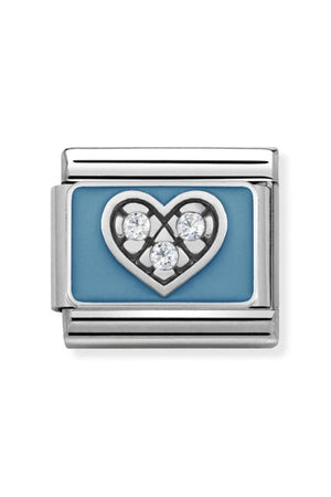 Composable Cl Simbols Paslanmaz Çelik, Emaye, Yavru, Zirc Ve 925 Sterling Gümüş Cz Kalp Işık Mavi