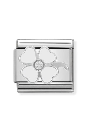 Composable Cl Sımbols Stainless Steel, Enamel, 1 Cub, Zirc And 925 Silver 14_whıte Clover