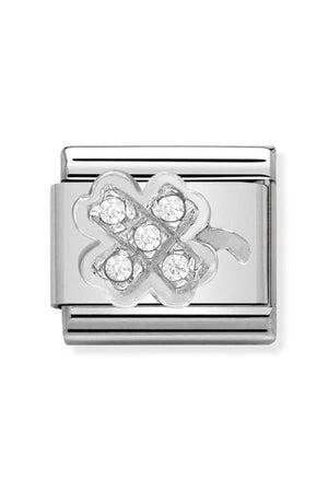 Composable Cl Symbols Steel , Cubic Zirconia And Silver 925 (07_clover)