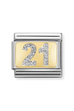 Composable Classic Dekoratif Link - Plakalar Pırıltılı Sayılar - 21 Gümüş - 18K Altın