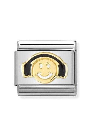 Composable Classic Dekoratif Link - Semboller - Siyah Kulaklıklarla Gülümseme - 18k Altın