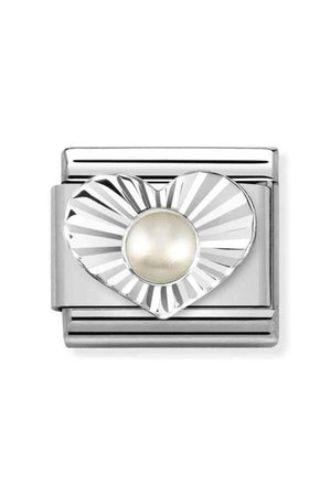 Composable Classic Dekoratif Link - Taşlar Kalp Elmas - Beyaz inci - 925 Gümüş