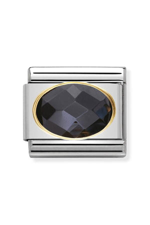 Composable Classic Dekoratif Link - Yüzey Işlemeli Oval - Siyah - (011 BLACK) 18k Altın