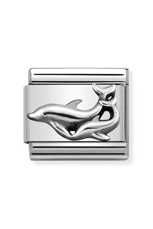Composable Classic Oxıdızed Symbols In St,steel And Sterling Silver (29_dolphins)