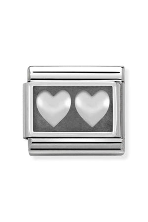 Composable Classic Plates Oxıdızed Steel And Silver 925 (02_double Heart)