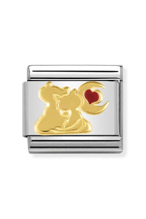 Composable Klasik Dünya Hayvanları 1 Emayeli Paslanmaz Çelik Ve Kalp Ve Aylı 18k Altın Kediler