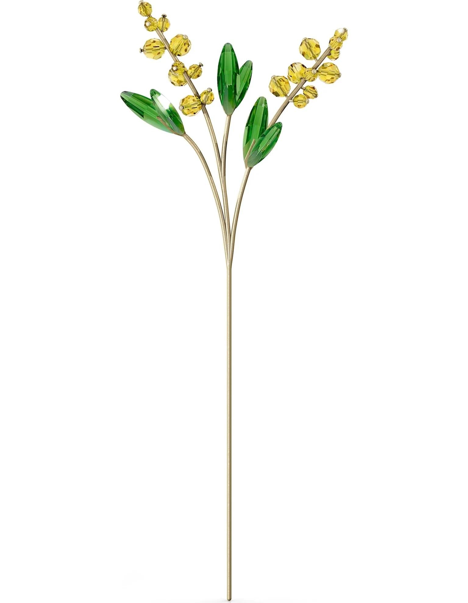 Modern tek çiçek vazo trendinden ilham alan bu muhteşem ve natüralist kristal tasarım, bir mimozayı tasvir ediyor. Sembolik şiirlerde sıklıkla yer alan mimoza, güneşi temsil eder ve genellikle yasak aşkı simgelemek için kullanılır. Yeşil ve sarı kristallerle üretilmiş, fırçalanmış şampanya altın rengi kaplama metal gövdesiyle, parça yeni ve zarif bir görünüme ev sahipliği yapıyor. Harika bir hediye seçeneği olan bu parça, büyük veya küçük boy bir Garden Tales Dekoratif Vazo içerisinde sergilenebilir. Dekorasyon objesi. Oyuncak değildir. 15 yaş altındaki çocuklar için uygun değildir.