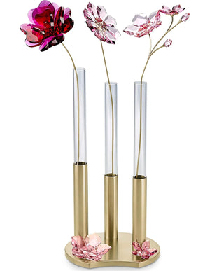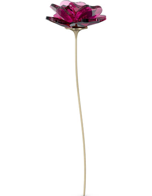 Tek çiçek vazoları trendinden ilham alan bu muhteşem kristal tasarım, romantik bir gülü tasvir ediyor. Kırmızı kristal 123 façetayla ışıltı saçıyor. Taç yapraklarının yumuşak hatları ve fırçalanmış altın renkli kaplama metal sap, modern minimalist bir tarz ortaya koyuyor. “Seni seviyorum” demenin nesiller boyunca devam eden bir yolu olan gülün yer aldığı bu tasarım, her türlü özel bir gün için ideal bir hediye seçeneğidir. Bahçe Öyküleri Dekoratif Vazo’da sergileyerek seçkin bir ev aksesuarı olarak kullanılabilir. Dekorasyon objesi. Oyuncak değildir. 15 yaş altındaki çocuklar için uygun değildir.
