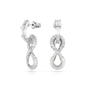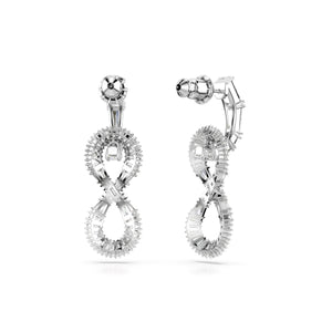 Zamansız bir tarz verilerek tasarlanan bu seçkin küpe, Swarovski savoir-faire’inin harikulade bir örneğini sunuyor. Baştan sona berrak Swarovski Zirkonya yerleştirilen rodyum kaplama parçaların her biri, zarif bir sonsuzluk motifine iliştirilmiş mini bir halka ile tamamlandı. Hiç bitmeyen ihtişam dolu geceler için mükemmel bir seçim.