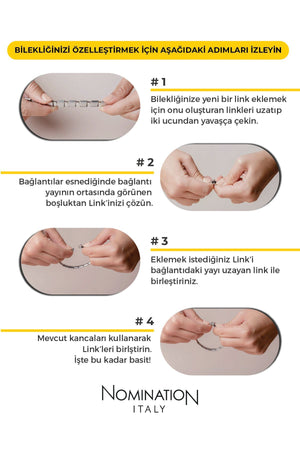Nomination by Made in ITALY, Her tarza uygun tasarımıyla, her yaştan kullanıcıya hitap eden kişiselleştirilebilir dekoratif bileklik. Paslanmaz çelik materyali sayesinde uzun ömürlü kullanım ve dayanıklılık sunar. İtalya'da üretilmiş olup, kalite standartlarına uygun olarak tasarlanmıştır. Hem erkek hem de kadın kullanıcılar için uygun olan unisex tasarım özelliğiyle geniş bir kitleye hitap eder. Modern bir görünüm kazandırırken, aynı zamanda kişisel mesajınızı veya isminizi bileğinizde taşımanızı sağlar. Sade ve zarif bir stil oluştururken, günlük kombinlerinizle kolayca uyum sağlar. Ürününüzle ilgili herhangi bir sorun yaşamanız durumunda 1 yıl garanti süresi mevcuttur böylece güvenle kullanabilirsiniz.