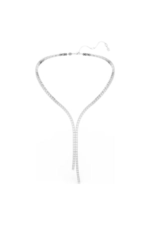 Swarovski’nin imzası niteliğindeki Matrix Tennis tarzı, bu ışıltılı Y-kolye ile zirveye ulaşıyor. Istakoz kapamalı rodyum kaplama tasarım, her biri berrak renk ve tırnaklı yerleştirme ile sunulan yuvarlak kesim Swarovski Zirkonyalardan oluşan çarpıcı bir eklenebilir parçayla boynunuzu sarıyor. Tüm kıyafetlere son dokunuşu katacak kadar yoğun bir ışıltıya sahip benzersiz bir takı.