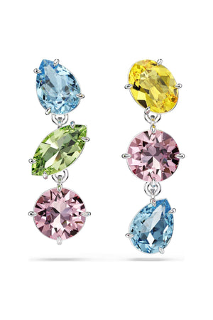 Bu oyuncu iğneli küpeyle tarzınızın gerçek renklerini açığa çıkarın. Benzersiz Gema tarzıyla hayat bulan bu rodyum kaplama parça, iki asimetrik eklenebilir parçayla sanatsal bir şekilde sarkıtılan ve farklı şekil ve renklerin karışımına sahip taşlarla tamamlanıyor. Uyumlu bir kolyeyle birlikte kullanın ve iltifatları toplamaya hazır olun.