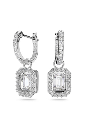 Millenia ailesine ait bu nefes kesici damla küpelerle günlük görünümünüze hareket katın. İğneli kulaklar için tasarlanmış rodyum kaplama parça, zarif bir şekilde pavé kristallerle çerçevelenmiş sekizgen kesim dans eden odak noktası taşları gözler önüne seriyor. Kullanışlı renk paleti, tasarımın tek başına veya diğer renkli mücevherlerle birlikte kullanımı için çok sayıda olasılık sunuyor.