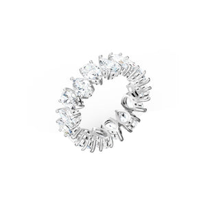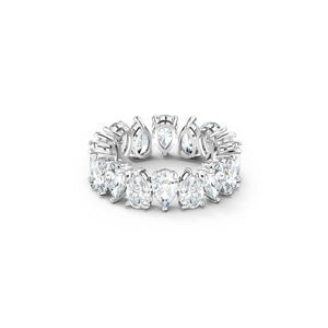 Swarovski tasarımı bu yüzük parıltı saçan façetalı taşların ışıltılı güzelliğini ön plana çıkarıyor. Tek bir sırada dizilen beyaz damla şekilli bileşenler gelen ışığı göz alıcı bir şekilde yansıtıyor ve kırıyor. Bu yüzüğün saf ve zarif şekli onu diğer takılarla kullanmak ve yüzüklerle üst üste takılan trend görünümler oluşturmak için mükemmel bir seçenek kılıyor. Kıyafetinizi özel günlerde tamamlamak için mükemmel bir seçim olmasının yanı sıra gerçekten de ilham veren bir hediye fikri.