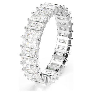 Hiçbir takı koleksiyonu ışıltılı bir bant yüzük olmadan tamamlanmış sayılmaz. Bu rodyum kaplama tasarım, her biri seçkin bir tırnaklı yerleştirmenin içine yerleştirilen baget kesim Swarovski Zirkonyalarla tamamen sarılarak tamamlanıyor. Tek başına veya Matrix ailesindeki benzer göz kamaştırıcılığa sahip yüzüklerle üst üste takabileceğiniz muazzam bir parça.