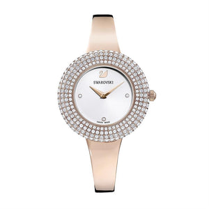 Crystal Rose serimizle her gün maksimum ışıltıya ulaşın. Zarif ve seçkin tasarım, çerçevenin etrafında yer alan 215 adet mikro pavé kristal ile Swarovski kristalinin benzersiz ışıltısını ön plana çıkarıyor. Pembe altın rengi PVD paslanmaz çelik kasa, halka bileklik ve üç adet berrak kristal gösterge işaretine sahip gümüş rengi bir güneş ışığı mine bu olağanüstü tasarımı tamamlıyor.