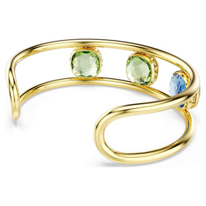 Bu neşeli Chroma Twist kelepçe bileklik Swarovski savoir-faire’inin oyuncu bir örneğidir. Sonsuz sayıda tarz seçeneği sunan altın rengi kaplama bant, bir yüzünde yeşil Swarovski ReCreated™ crystals, diğer yüzünde ise mavi Swarovski ReCreated™ crystals ve canlı pembe kristallerle tamamlanıyor. Ruh halinize veya kıyafetinize uygun hale getirmek için tek yapmanız gereken şey diğer yüzünü çevirmek. Aynı koleksiyonun diğer çift taraflı parçalarıyla birlikte kullanabileceğiniz çok yönlü bir seçim. Chroma Twist takılarının en az %50’si Swarovski ReCreated™ crystals ile üretilir ve döngüsellik göz önünde bulundurularak tasarlanan ilk koleksiyonumuzdur.